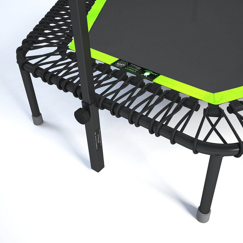 Unsere Trampoline wurden entwickelt, damit du dich richtig auspowern kannst. Ohne einen Griff zum Abstützen wäre dein Workout nur halb so effektiv